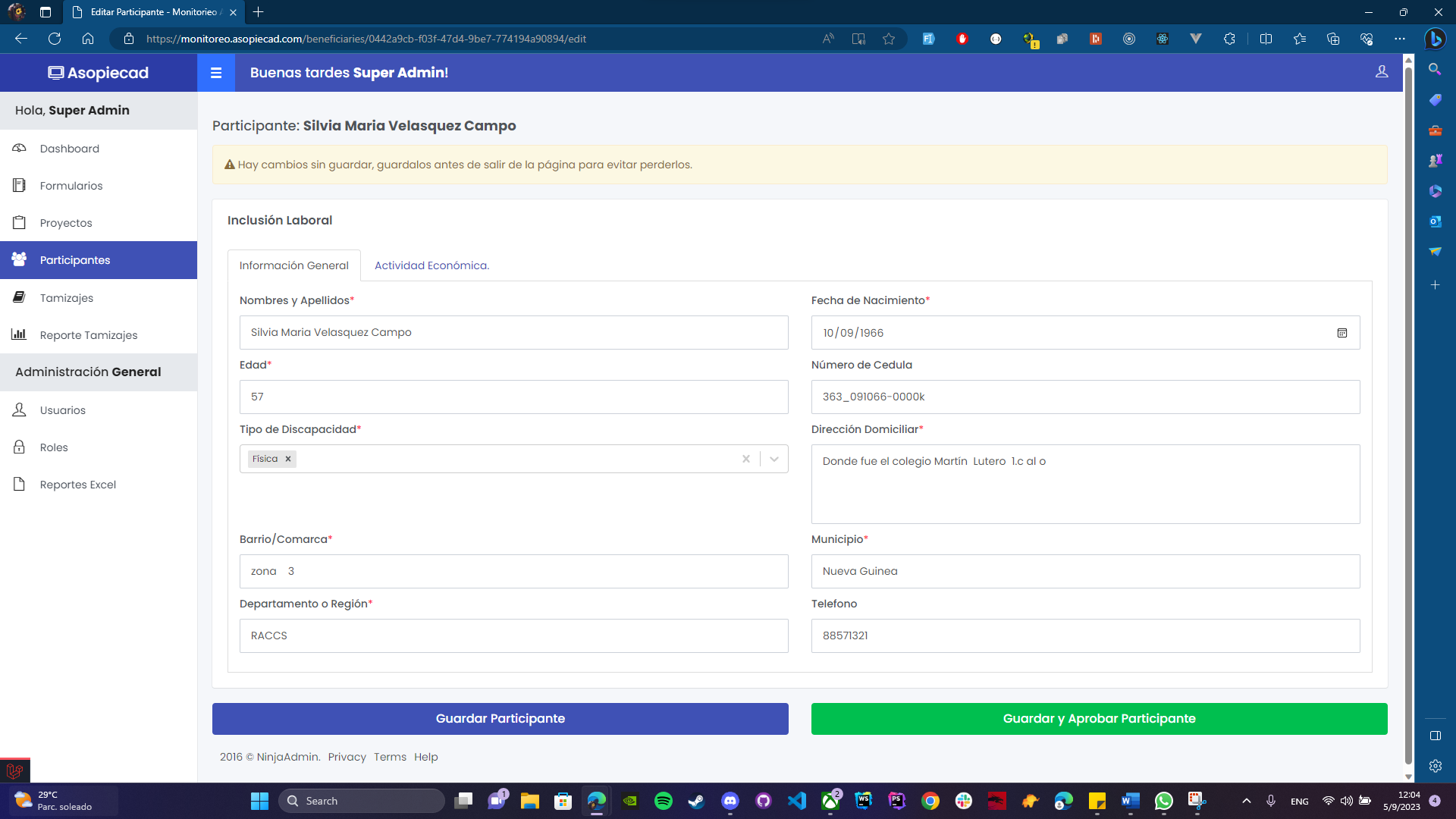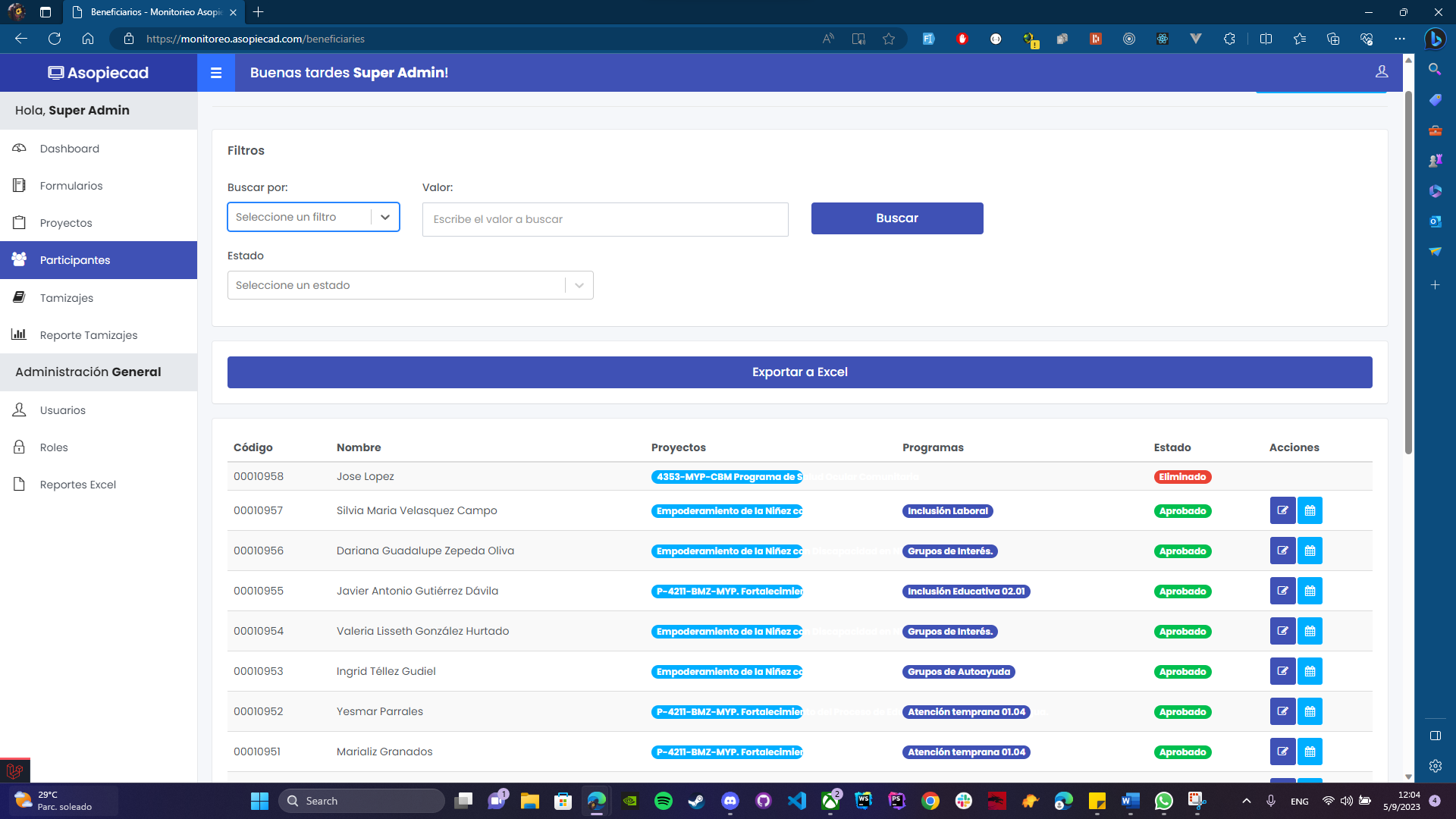 Sistema de Monitoreo de Participantes para ASOPIECAD (Asociación de Programas Integrales de Educación Comunitaria Astrid. Delleman).