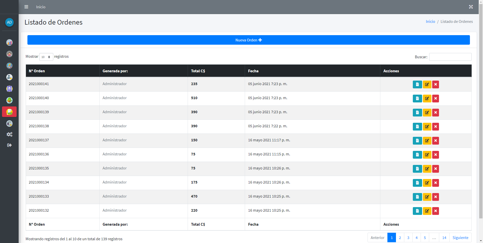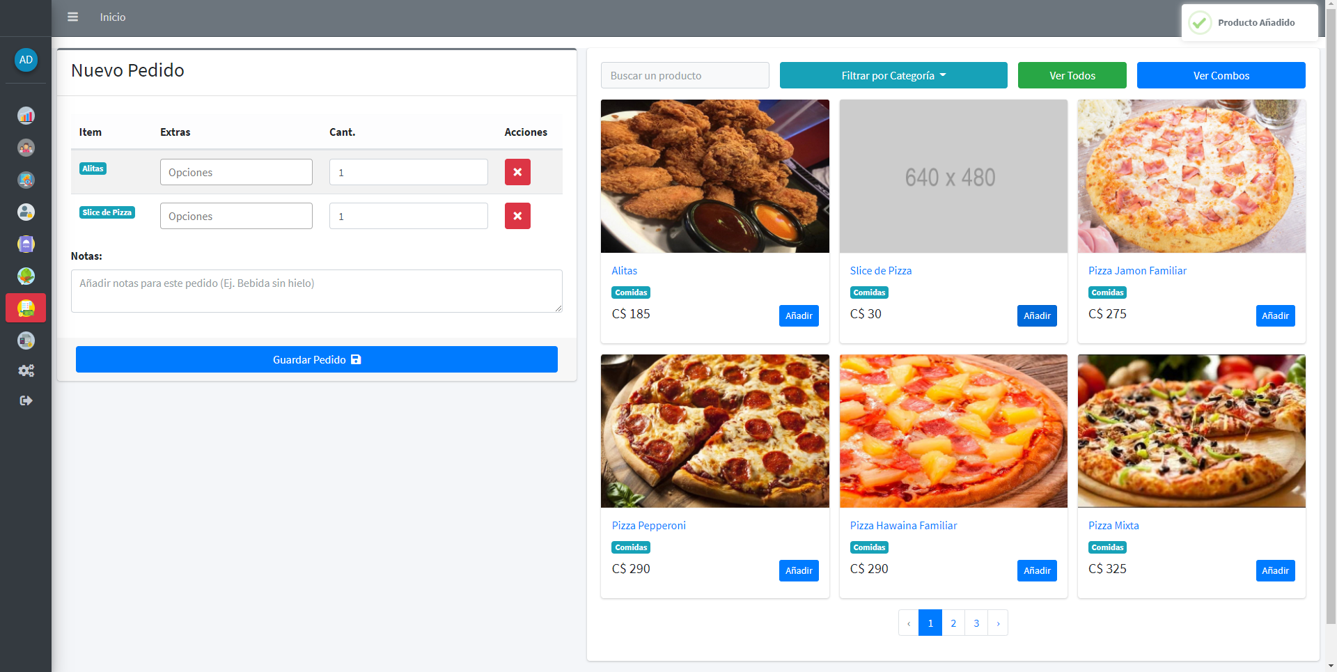 Sistema de Administracion de Ordenes, Productos e Inventario para la Pizzería Don Dimas ubicada en Masaya, Nicaragua.