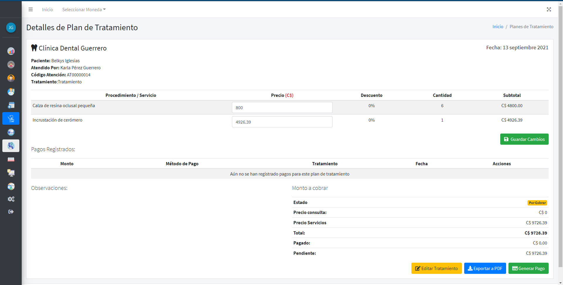 Sistema completo de Gestion de Servicios Odontológicos para la Clinica Dental Guerrero.