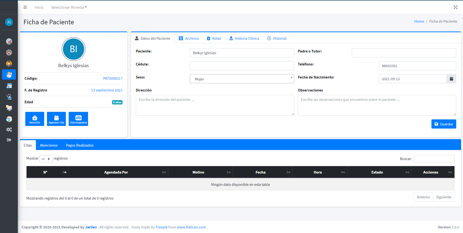 - Gestion de Pacientes ( Citas, Tratamientos, Odontograma, Historia Clinica )